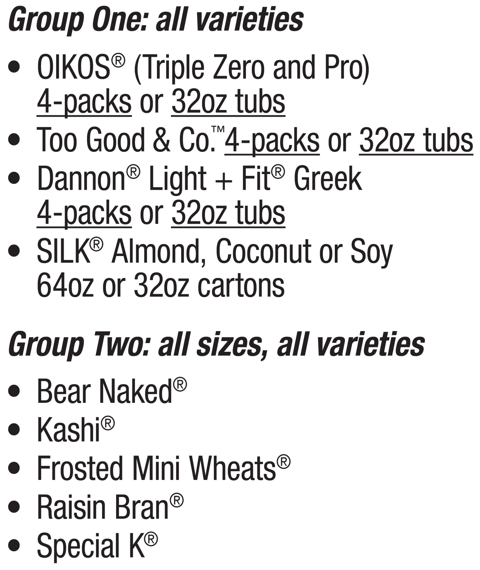 Purchase ANY TWO(2) OIKOS®, Too Good & Co.™, Light + Fit®, or SILK® products